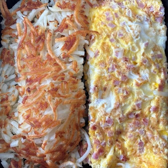 Stuffed with American cheese, hash browns, grilled ham and onion,