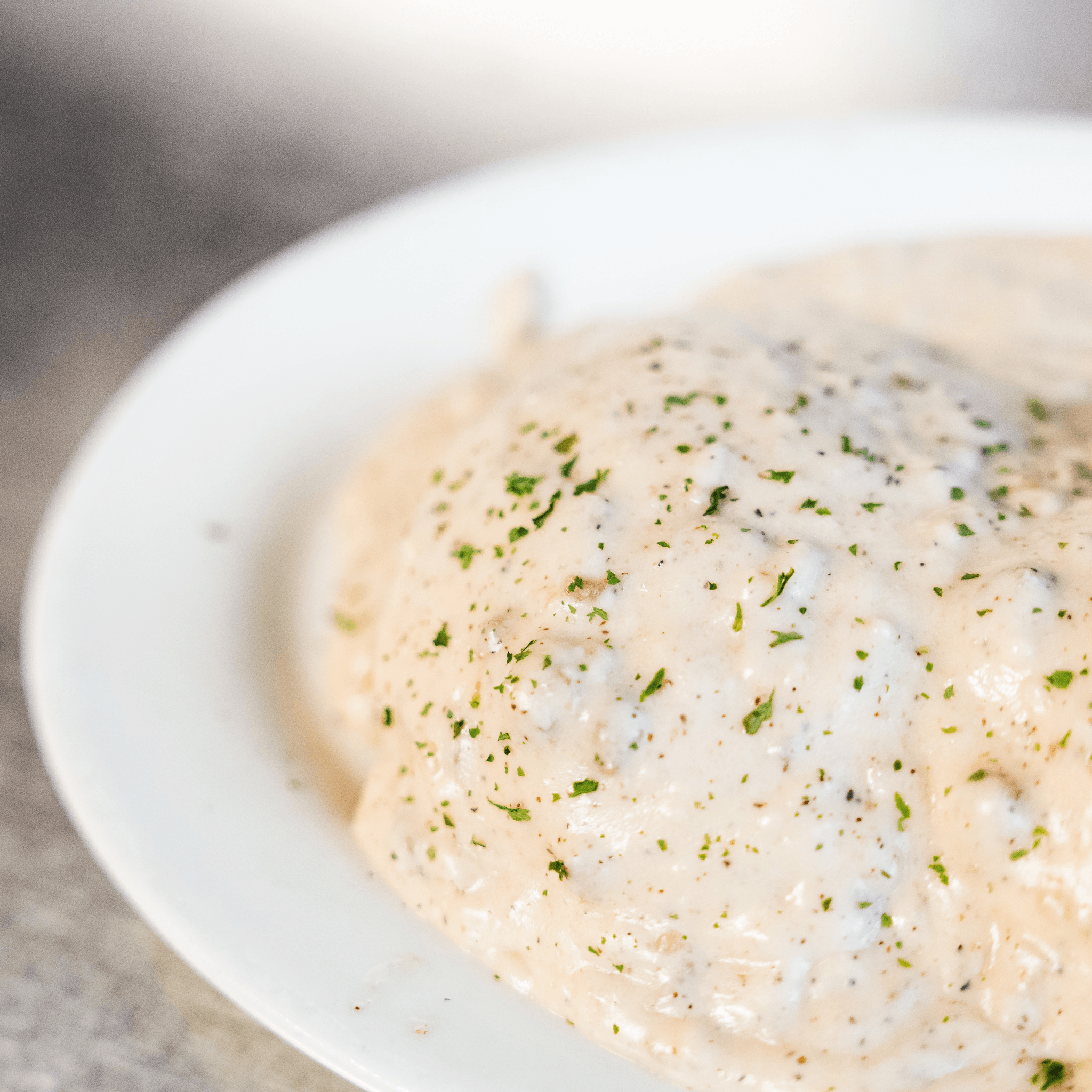 Buttermilk biscuits and our homemade sausage gravy on top. Add two eggs for an additional charge.