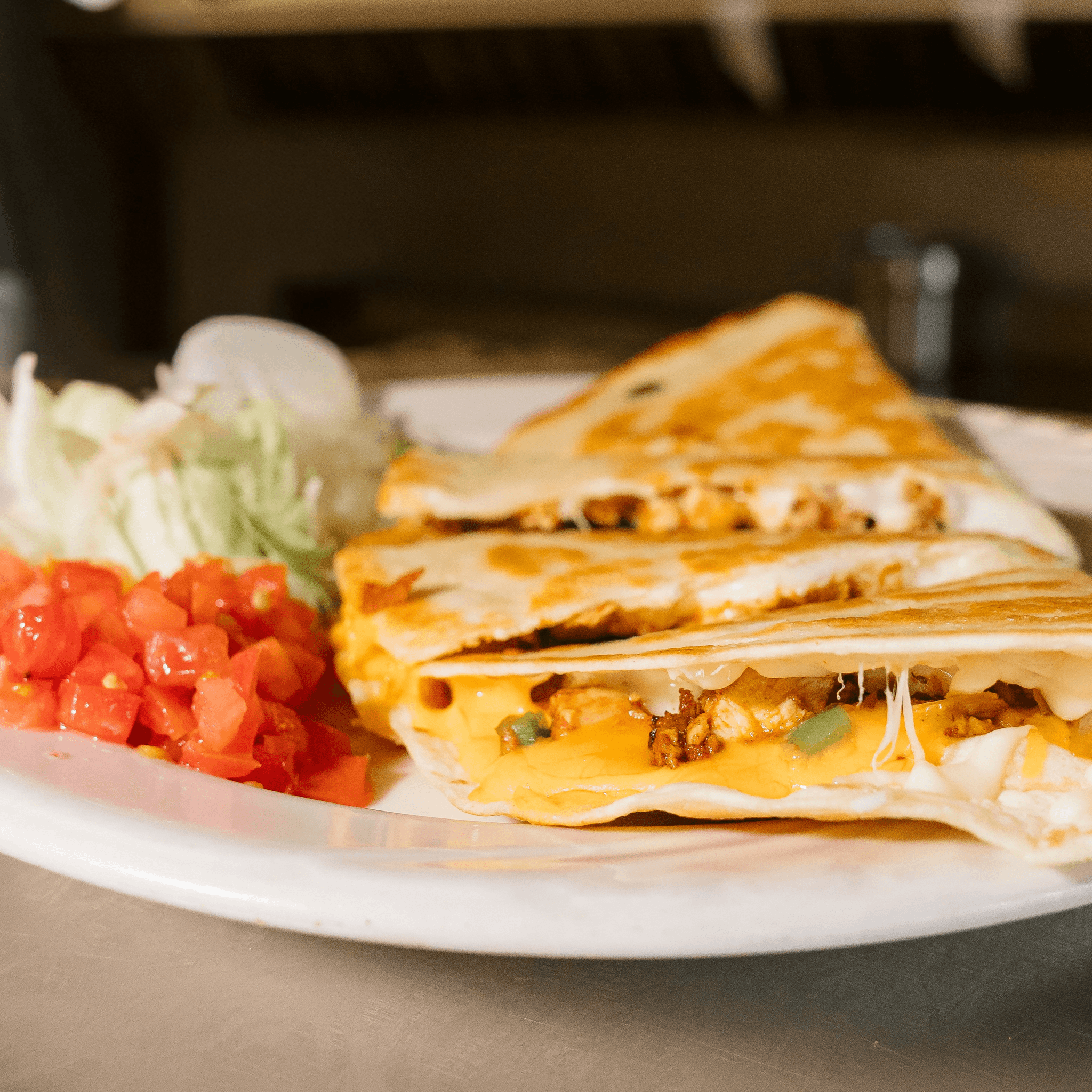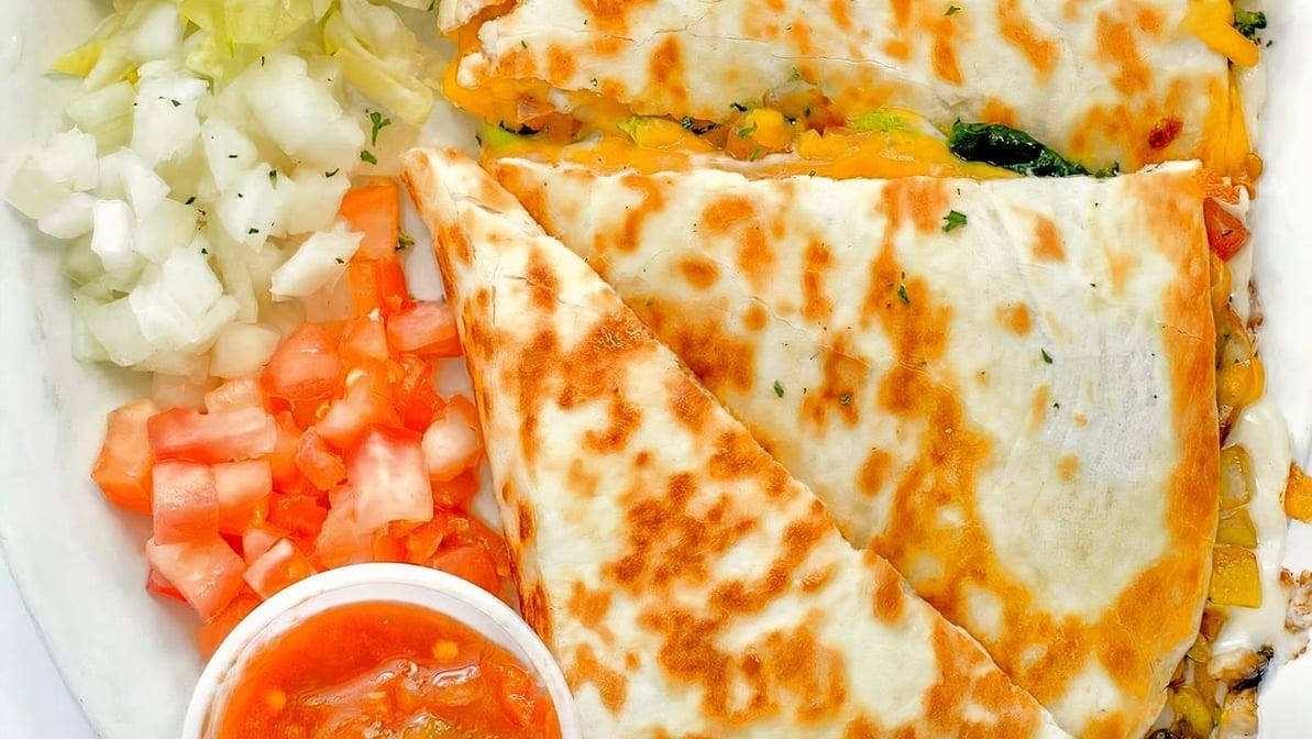 Turkey, bacon, avocado, lettuce, tomato and mozzarella cheese stuffed in a grilled tortilla