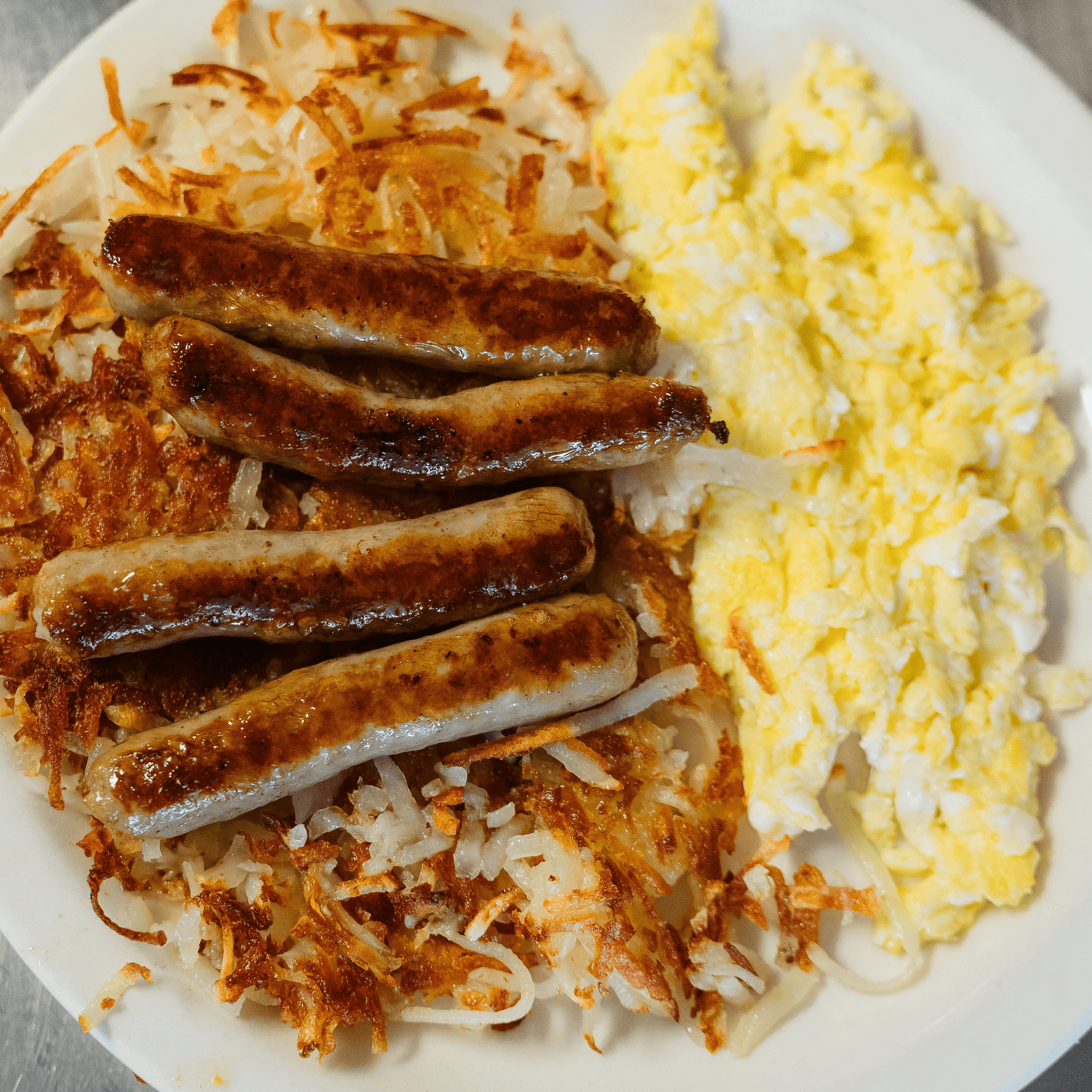 Served with hash browns and toast